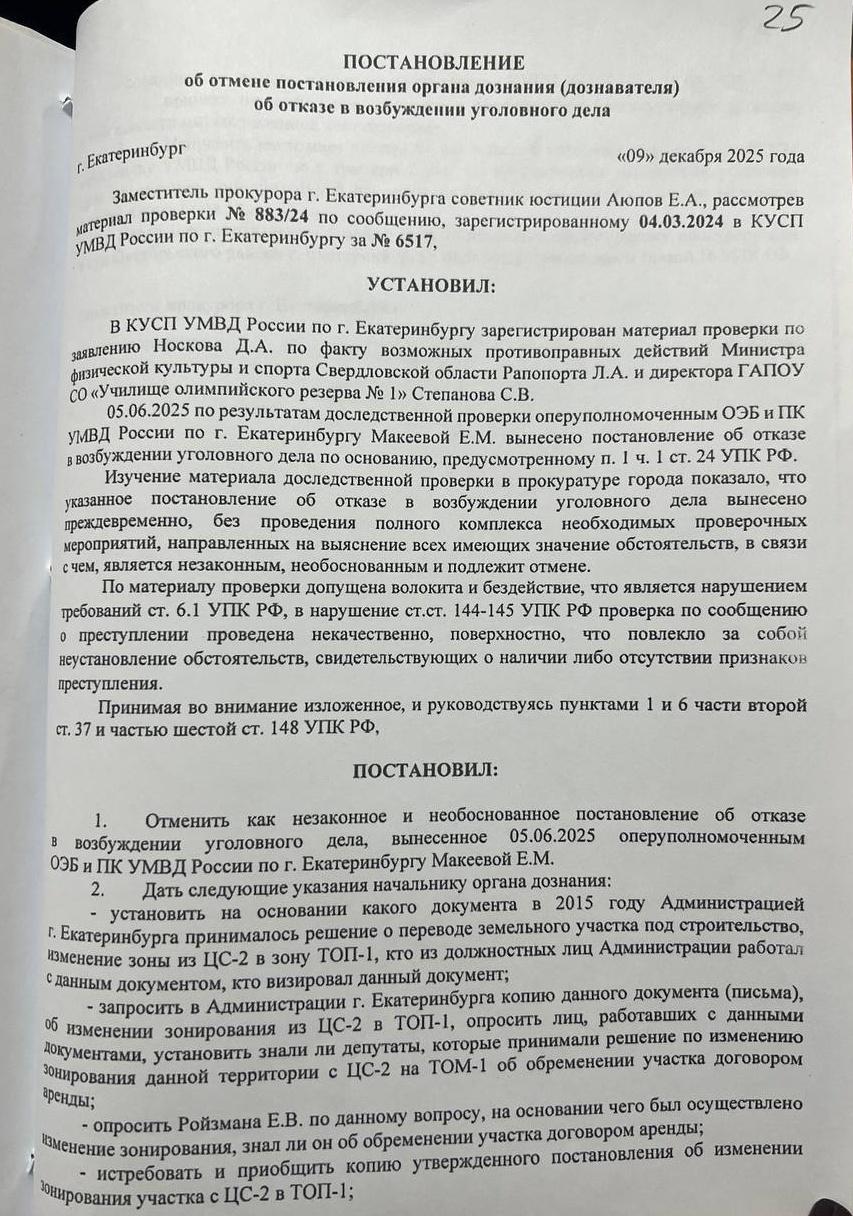 «Борцов с экономической безопасностью» в погонах не заинтересовал вопрос, зачем иностранный агент и на тот момент глава города – председатель думы Екатеринбурга Ройзман, зная об обременении участка договором аренды, незаконно вынес данный вопрос на заседание думы и впоследствии утвердил постановление об изменении зонирования, нанеся тем самым экономический удар по предприятию, которое собиралось построить теннисную школу для детей и взрослых.